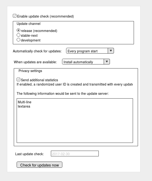 - LTEXT "If enabled, a randomized user ID is created and transmitted with every update check. This ID can not be linked to you or your computer in any way.",IDC_STATIC,12,102,264,24