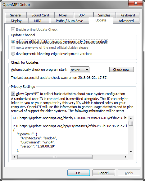 + CONTROL "&Allow OpenMPT to collect basic statistics about your system configuration",IDC_CHECK1,