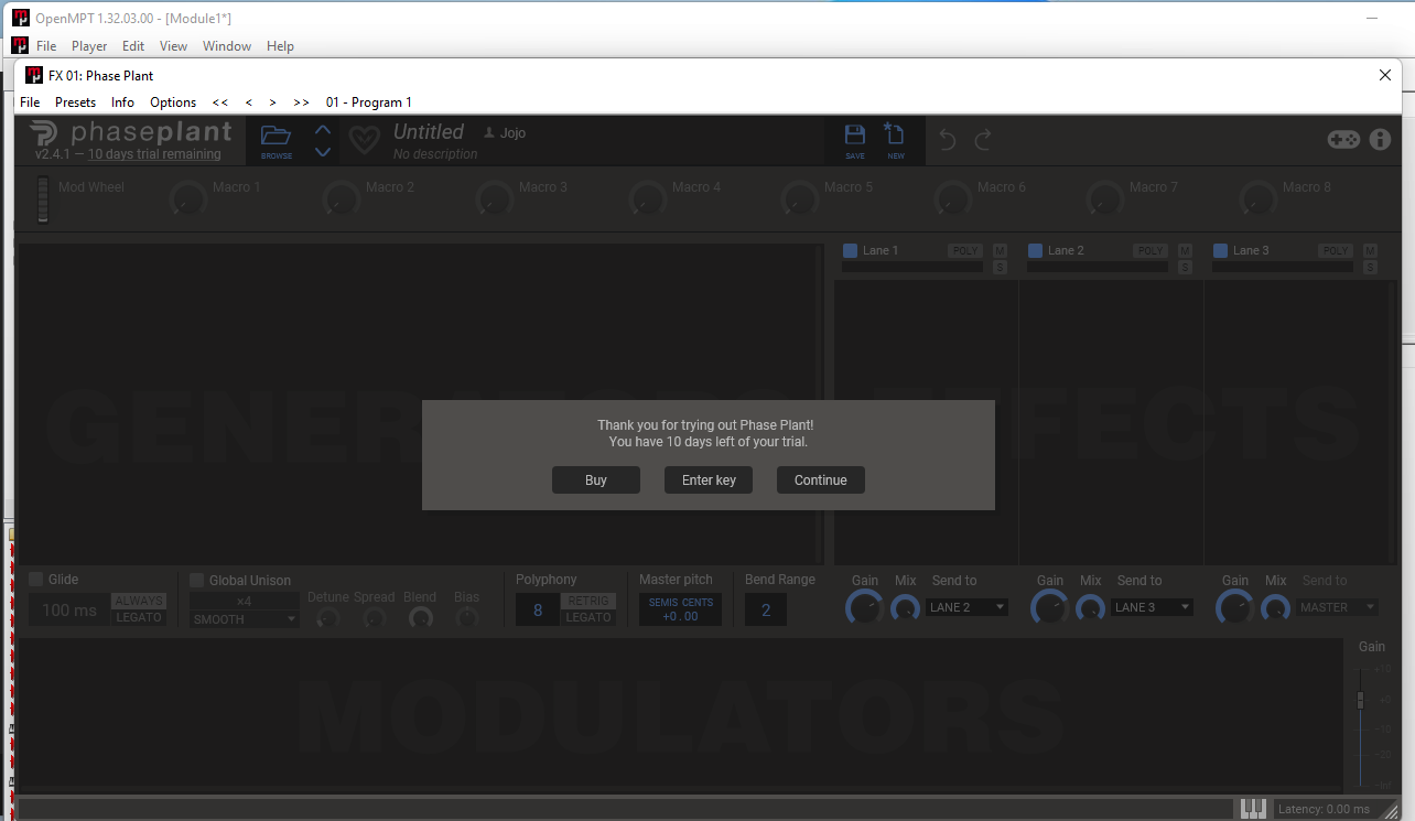| 2025-07-21 22:05 | Keygenism | Summary | Phase Plant is not working in OpenMPT => Update: Kilohearts plugins are not working in OpenMPT |